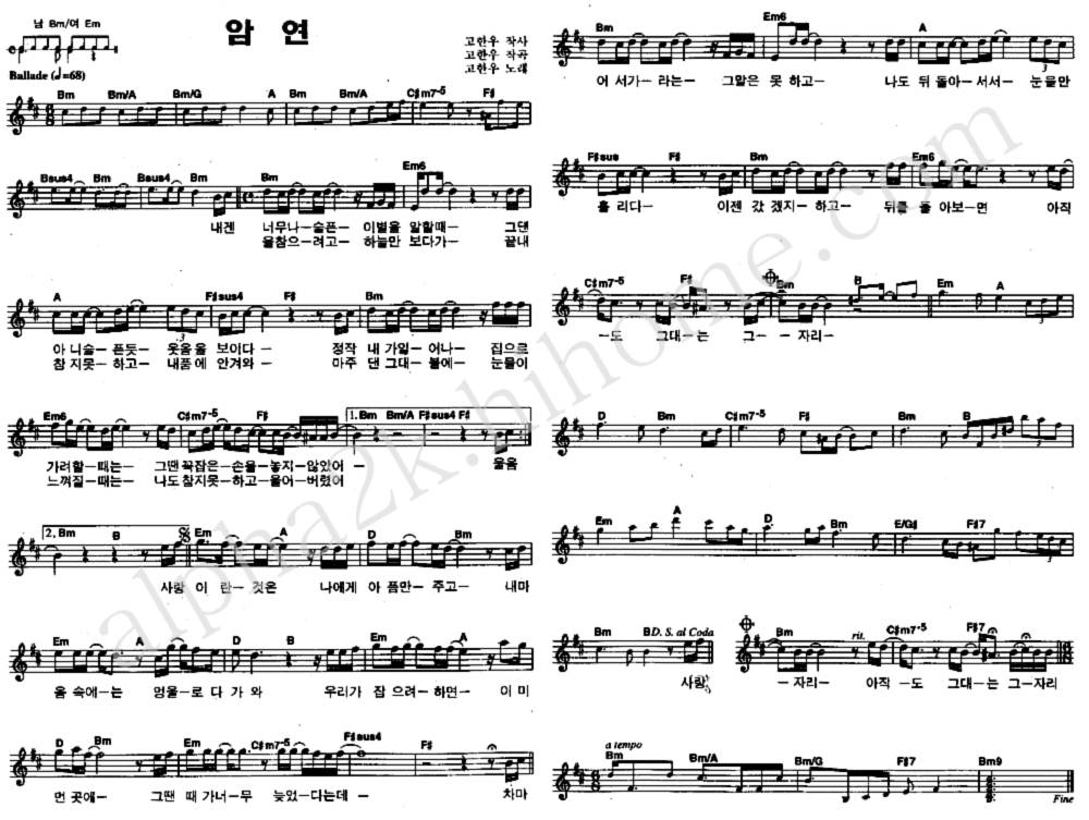 암연 고한우 이미지악보