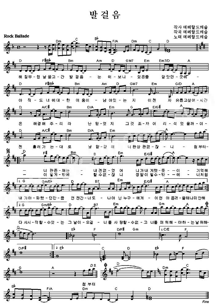 발걸음 악보 에메럴드캐슬 악보