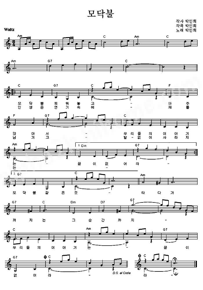모닥불 - 박인희 (악보)