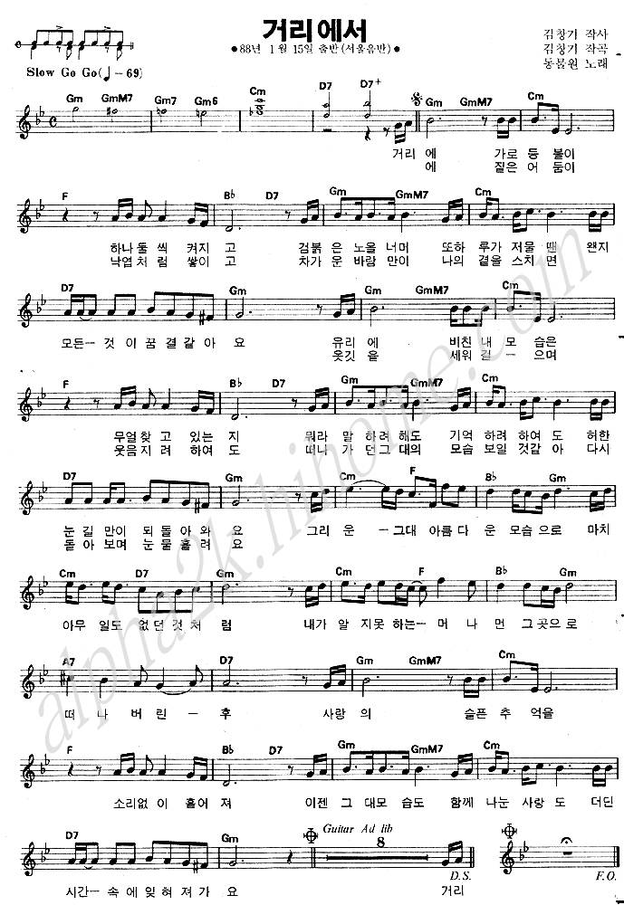 거리에서 - 동물원 악보