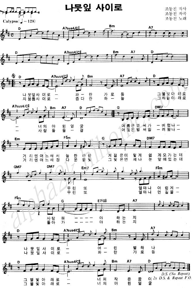 나뭇잎 사이로 - 조동진 악보