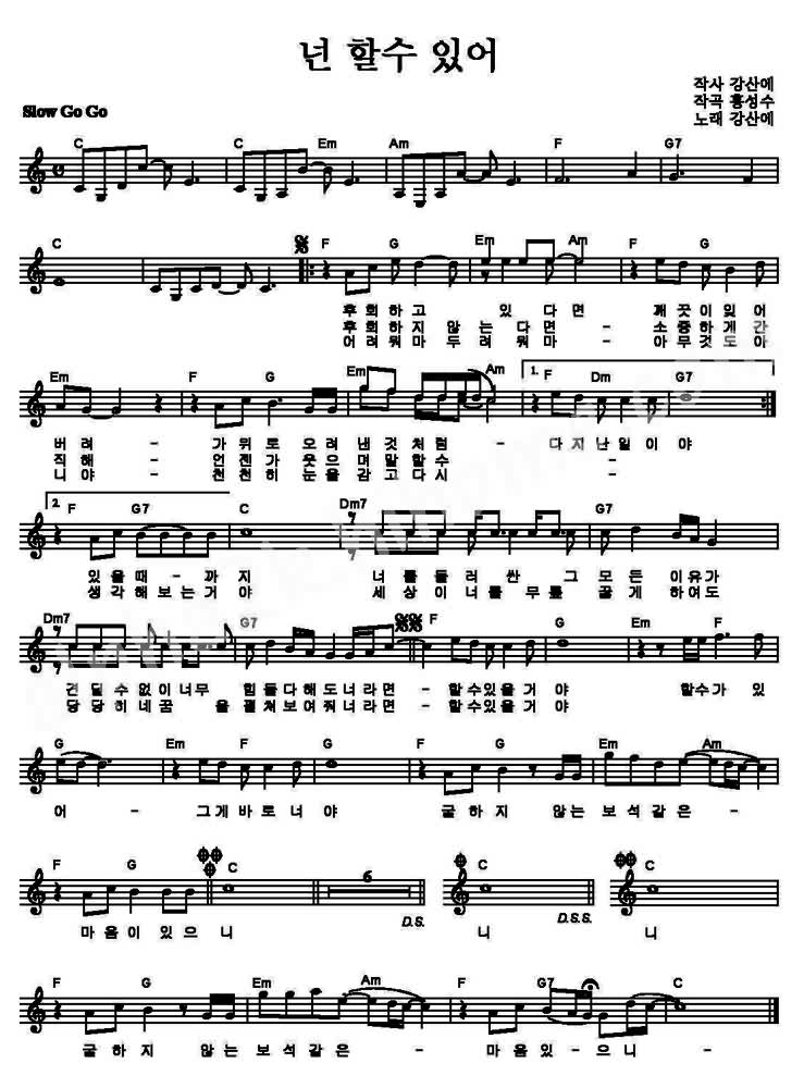 넌 할수있어 - 강산에 악보