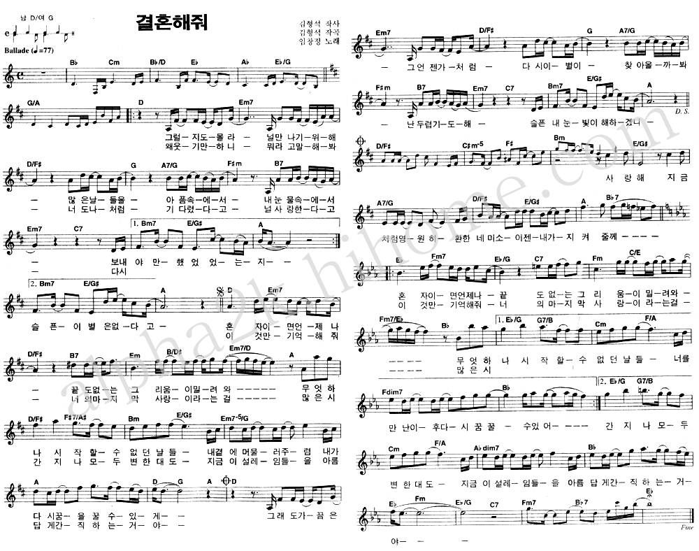 임창정 결혼해줘 악보